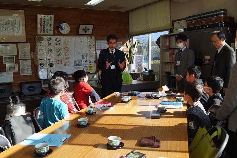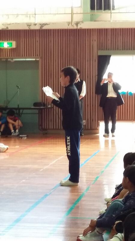 檍北小学校の教頭先生が紹介をしてくださり、児童代表が歓迎の言葉で迎えてくれました。