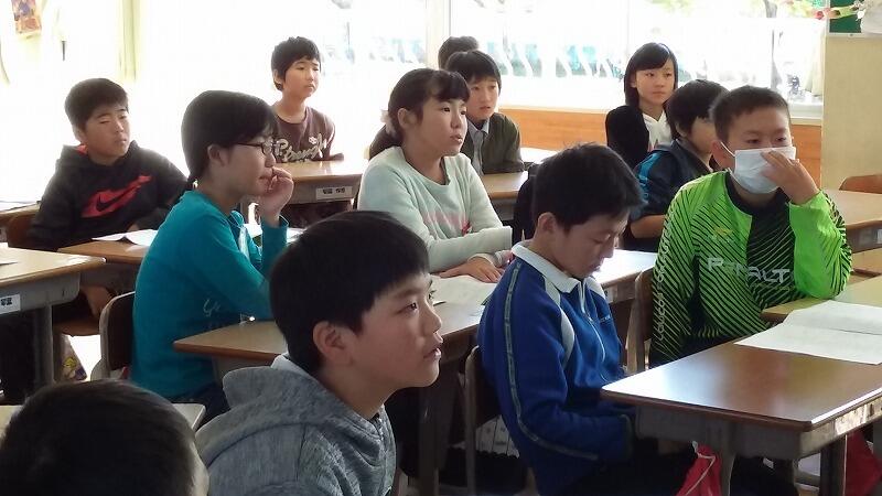 が学校紹介のプレゼンテーションをしました。たくさんの児童の前で話す機会はめったにありません。緊張しながらも、堂々と説明することができました。檍北小の皆さんも興味を持って聞いてくれました。