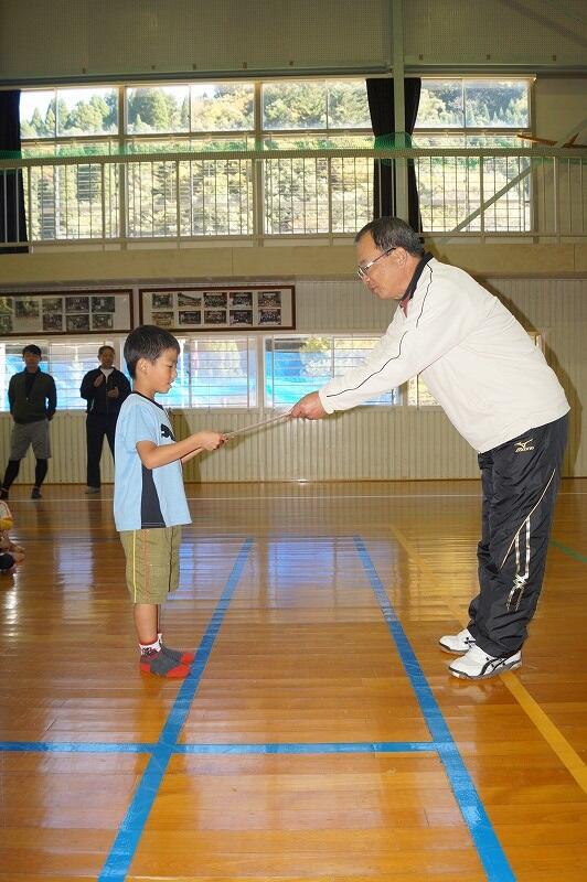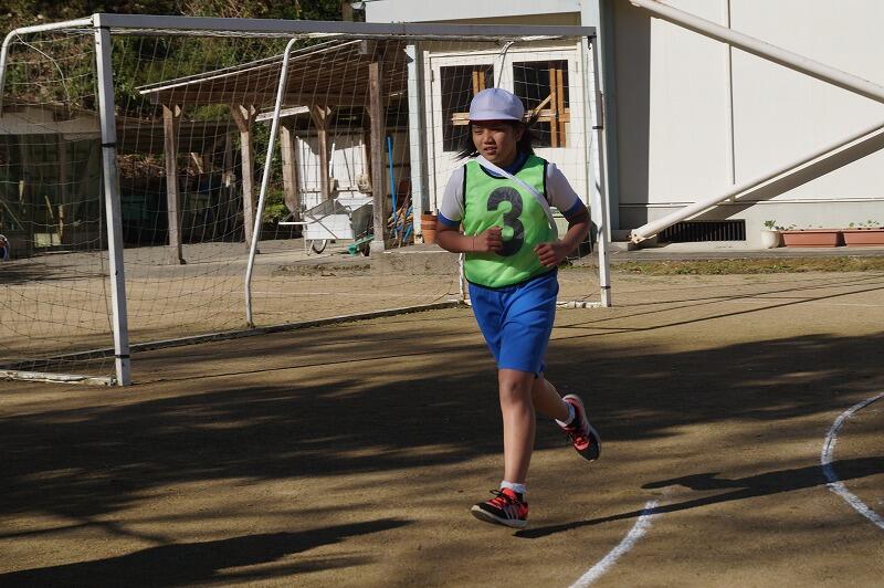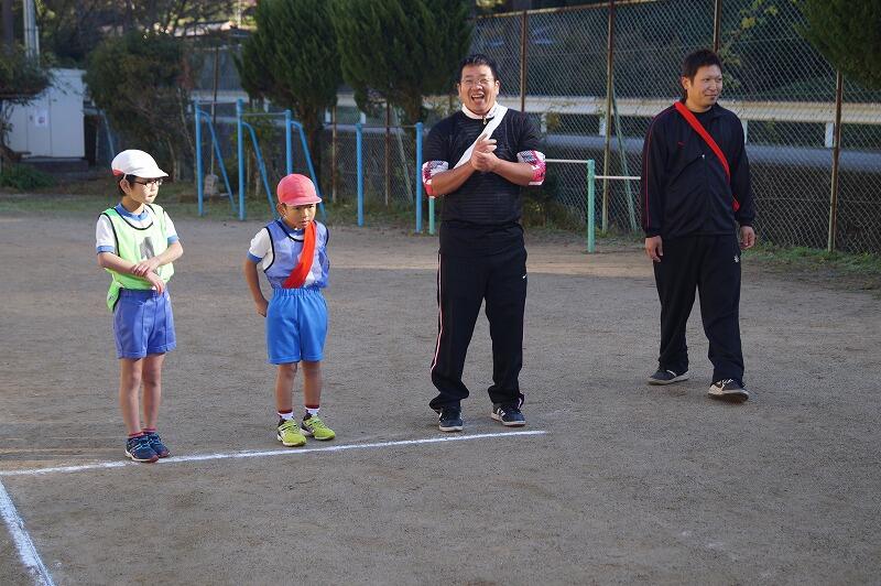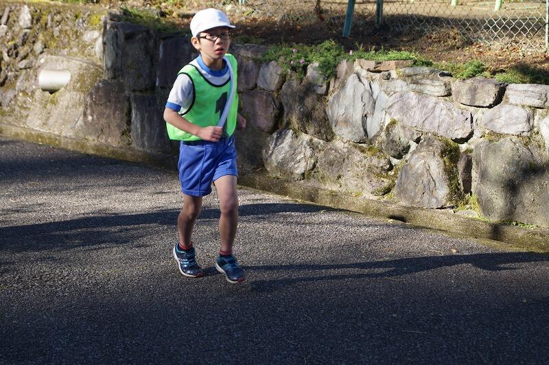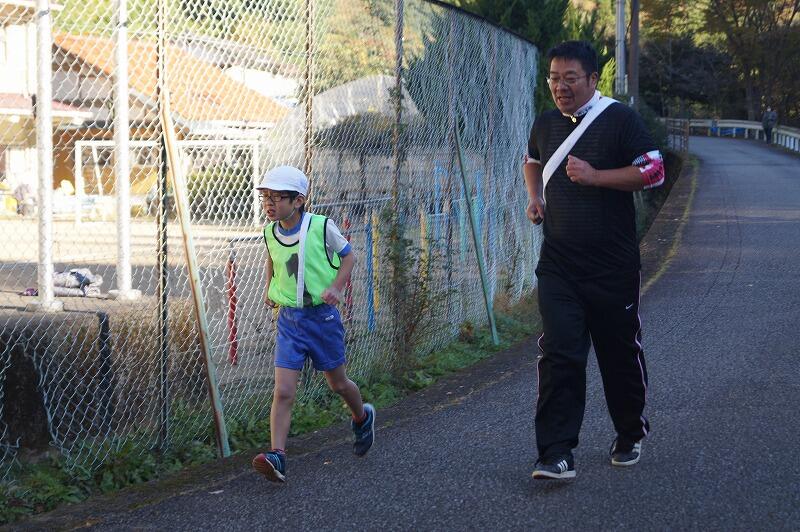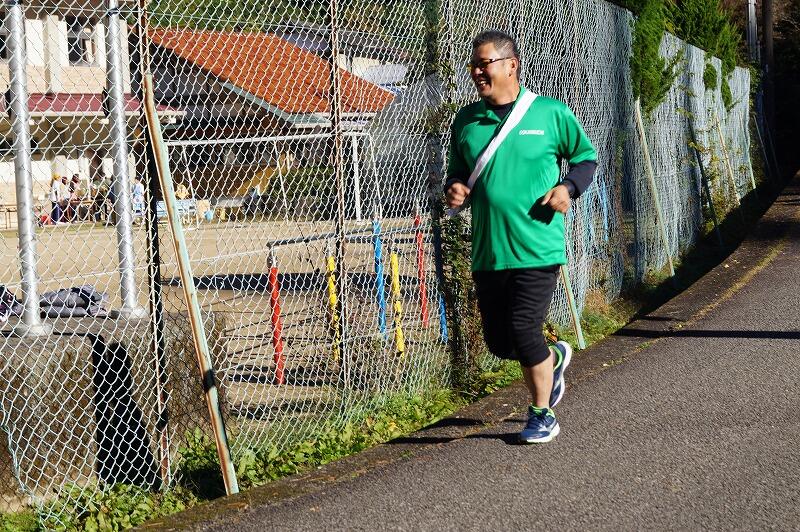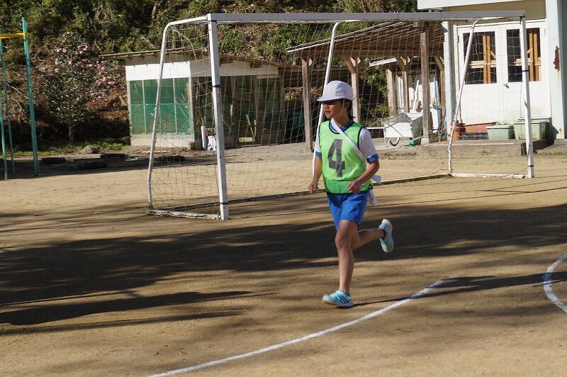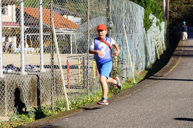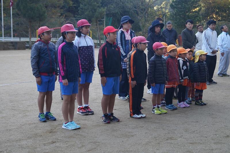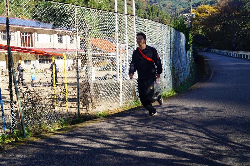 身の引きしまる空気の中、保育園の9名の園児と小学校の7名の児童でこれまで練習してきた長距離走の成果を披露しました。保護者(お父さん)チームと青年団チームも参加してくれました。