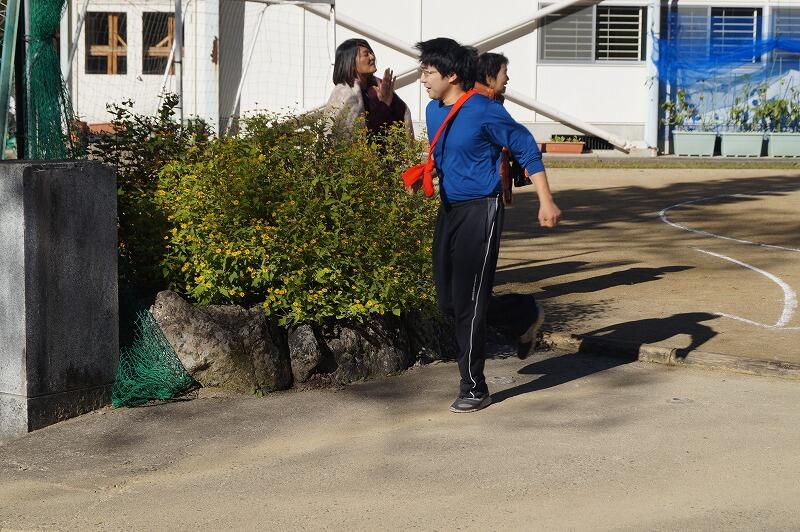 ★2区にたすきが渡りました。(児童数が少ないので2区は先生もお手伝い)