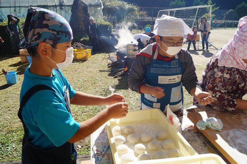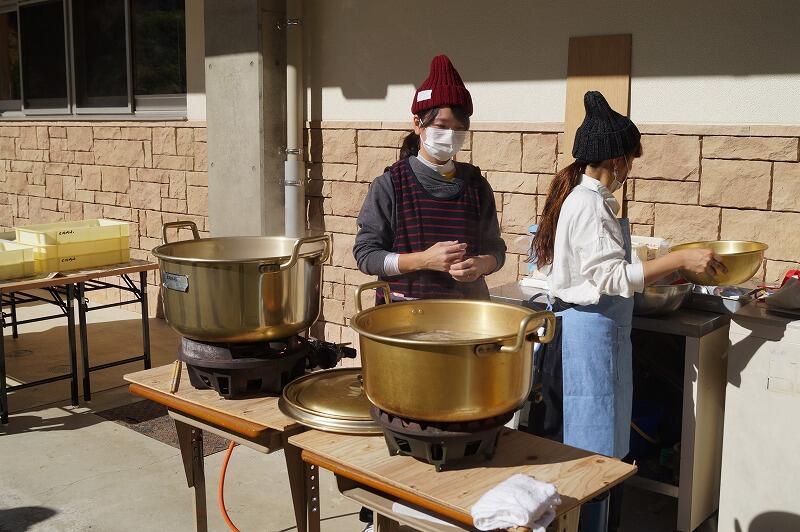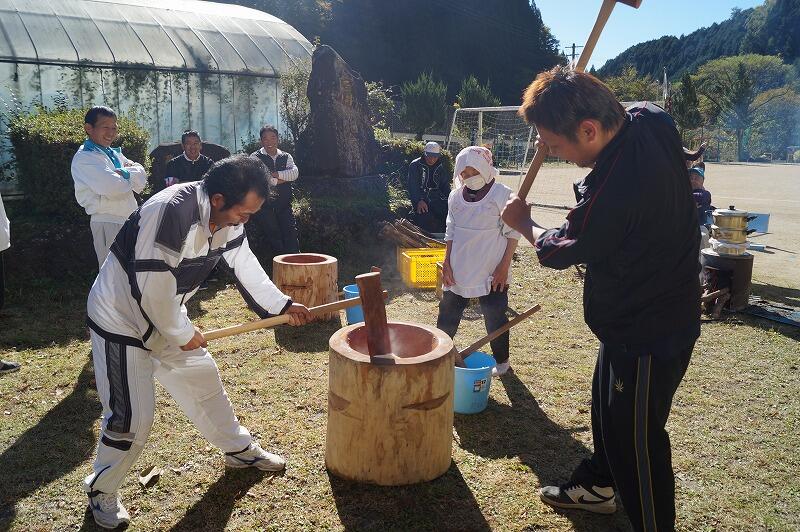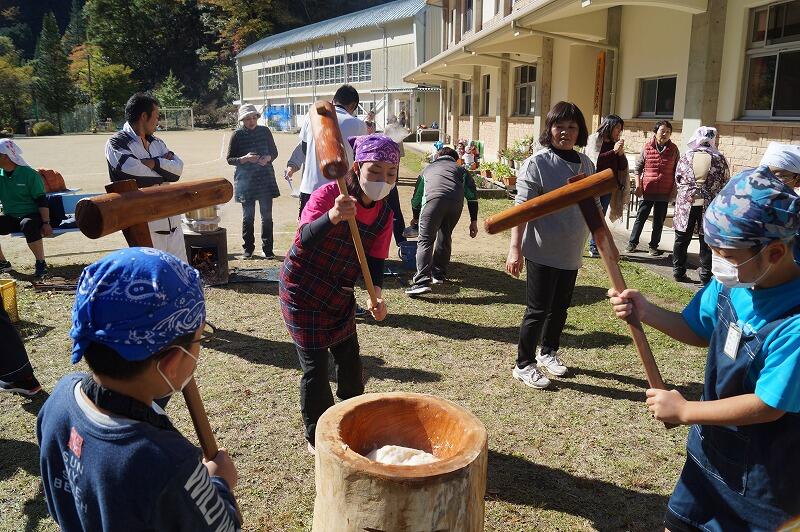 この後の餅つきの準備をお母さんや地域の方がしてくれています。