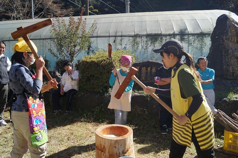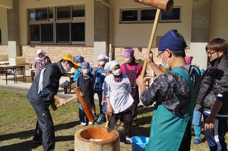 みんなで餅をつきながら、つき方のご指導、炊き方のご指導をいただきました。