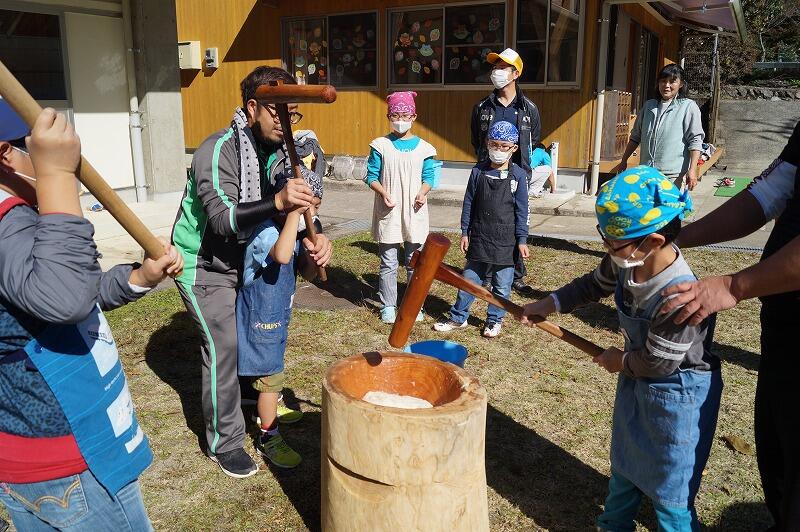 11月5日(日)の参観日は、保育園と小学校合同の駅伝大会と餅つきでした。