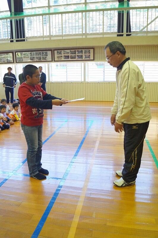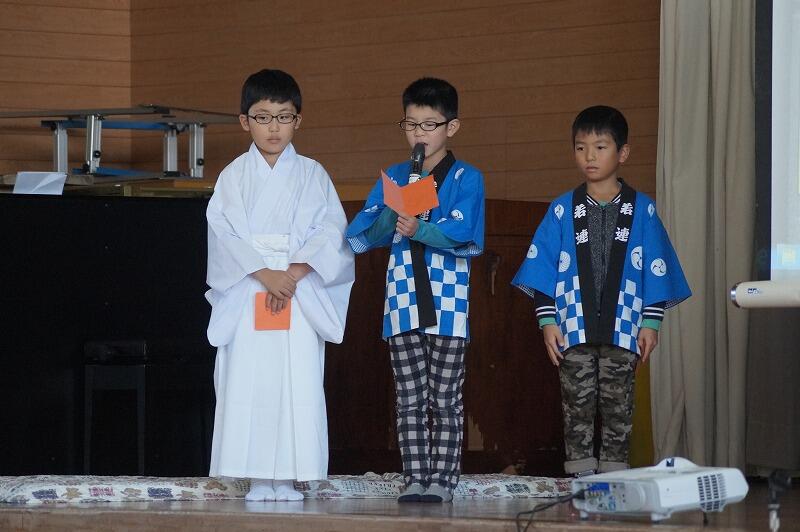 本校の校長先生があいさつを行った後、1年生Yくんと2年生Sくん、3年生のNくん