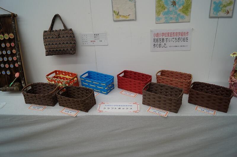 一方、開発センターでは、各地区の婦人会や家庭教育学級の会員の方々、学校の児童や生徒の作品展も行われました。本校の家庭教育学級は「クラフトボックス」を出品しました。
