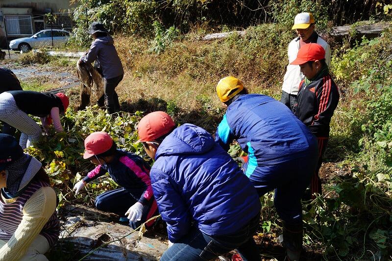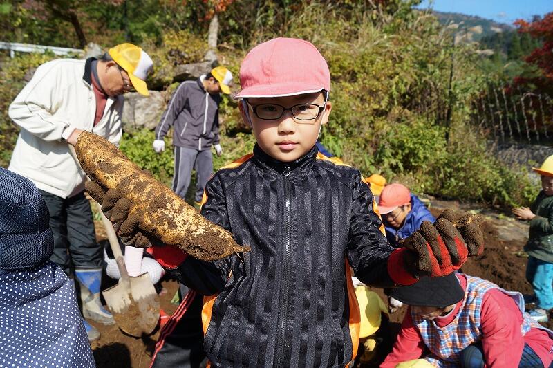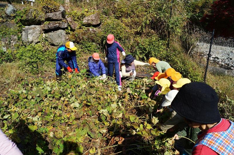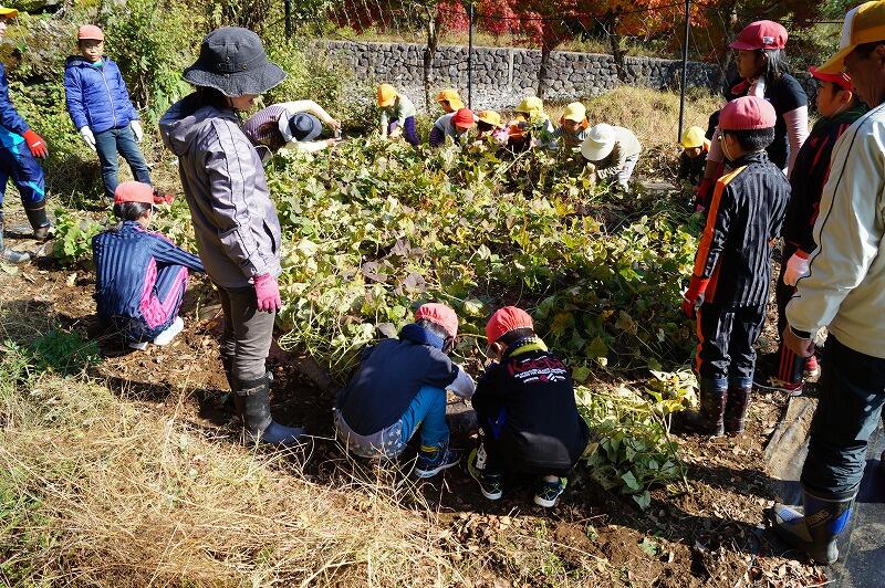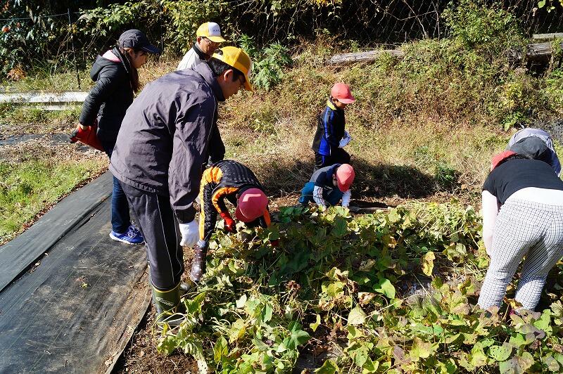 13日(月)に保育園と合同で学校園の芋掘りをしました。