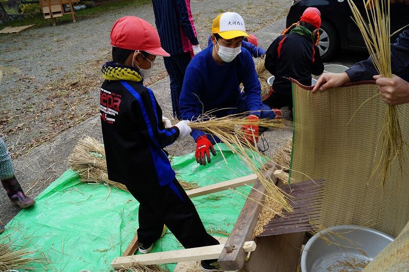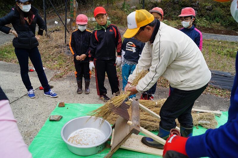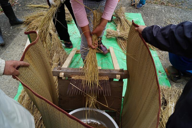 今回は、地域の方々に協力をいただき、昔から伝わる農具での脱穀にチャレンジです。