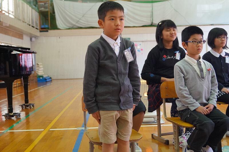 修了式後に本年度いっぱいで転出するNくんとHさんが、お別れのあいさつをしました。