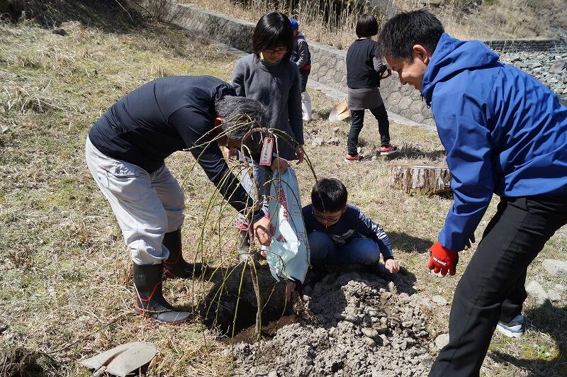 3月23日、卒業式の後に記念樹を植えました。卒業記念と合わせて、4月から転校する2名の児童も一緒に、これまでの感謝の気持ちを込めて苗木を植えました。