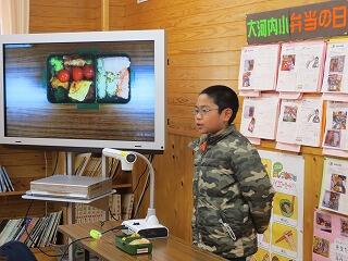 食べる前にお弁当発表会を行い、一人ずつ「弁当の名前」、「工夫したこと」、「難しかったこと」を発表しました。