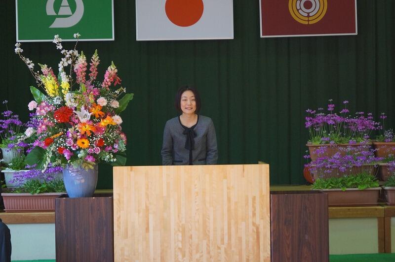 「『わたしを見てください』と自信をもって笑顔でいえる大河内小の子ども」というミッションがしっかりとできたこと。「できるまであきらめない」という姿勢で頑張れたことなどについて話されました。