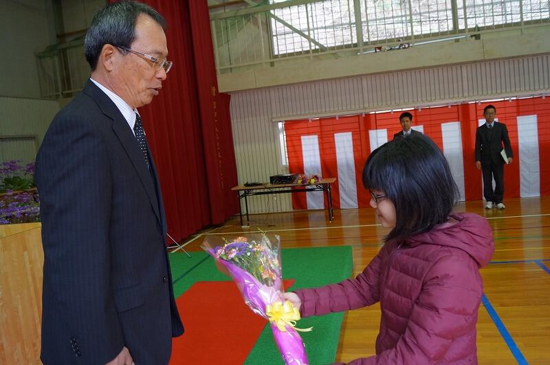 卒業証書授与の後、教育委員会からも卒業記念品をいただきました。