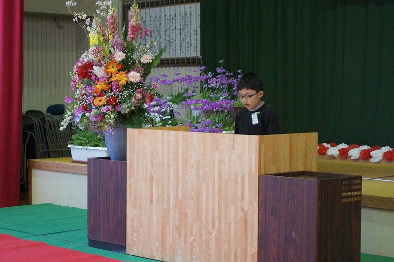 児童代表として1年Yくん、3年Nくん、5年Hさんが今年一年の自分を振り返って意見を述べました。