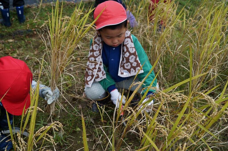 さすがに上級生は慣れたものです。しっかり踏ん張って、鎌をうまく動かして刈り取りました。