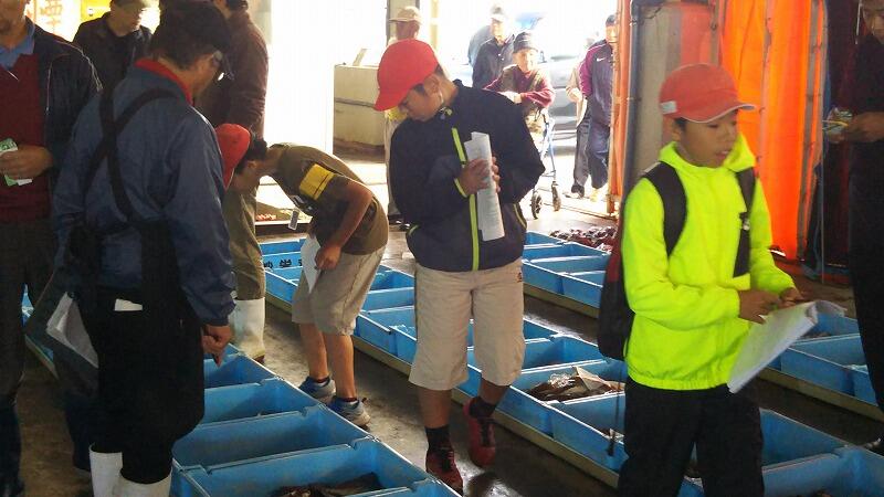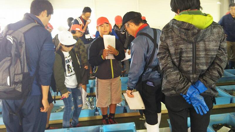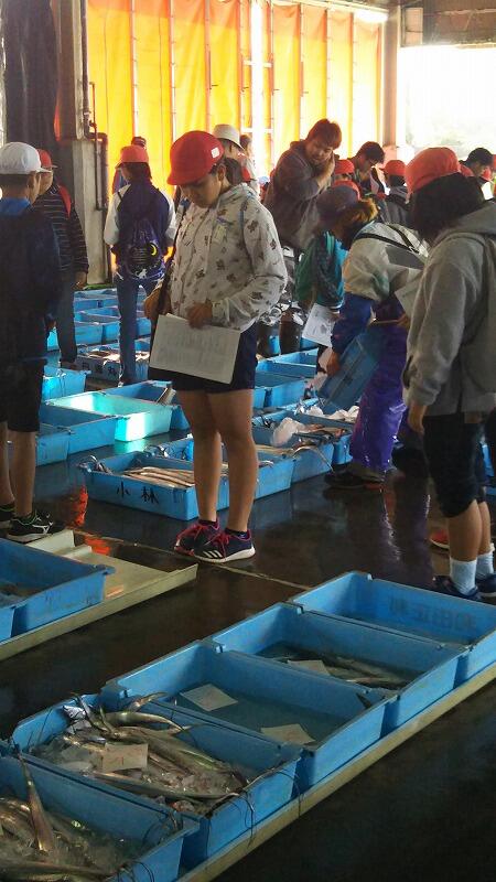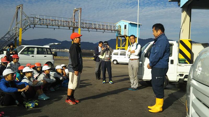 今日は、庵川漁港に朝のせりを見学に行きました。漁港の方にTくんが児童を代表して挨拶をしました。