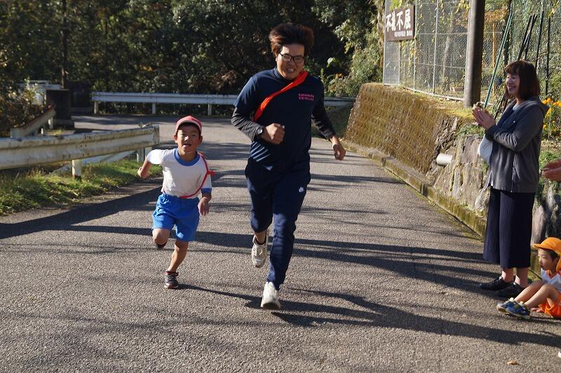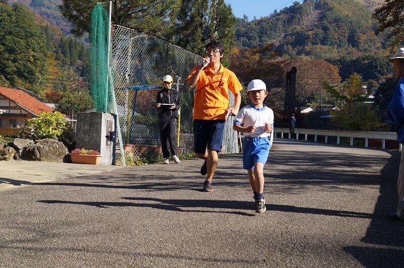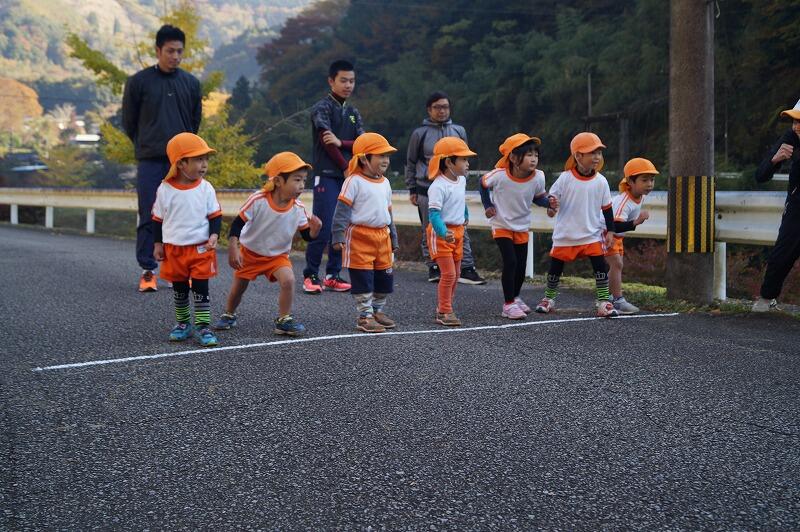 駅伝の前に自主参加してくれた保育園児の長距離走がありました。長距離とは思えないスピードで走り抜け、みんな驚いていました。