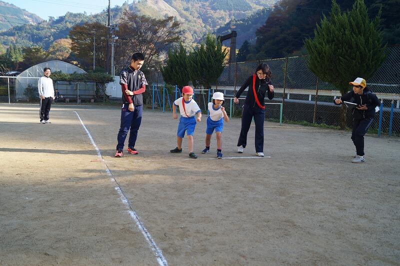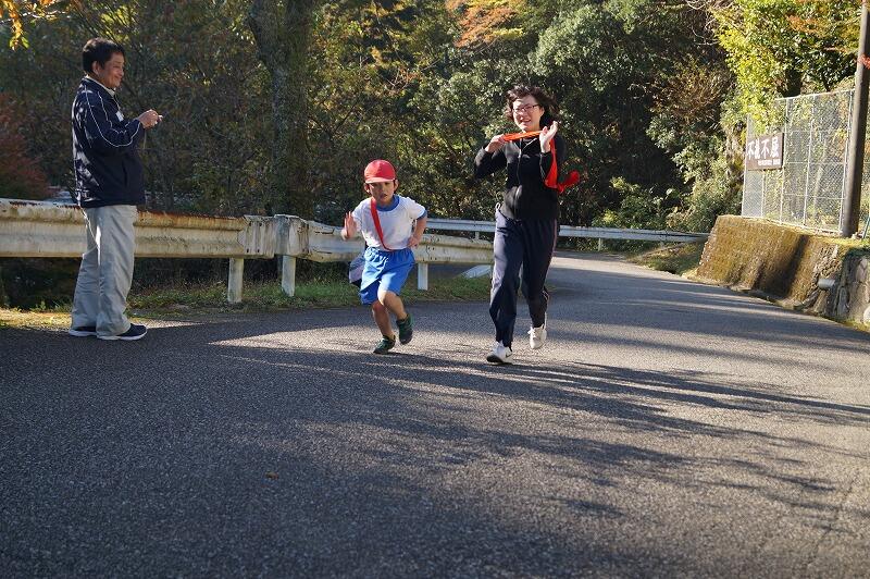 駅伝競争は保護者や卒業した先輩方にもご協力いただき小学生2チーム、保護者1チーム、先輩1チームで競いました。