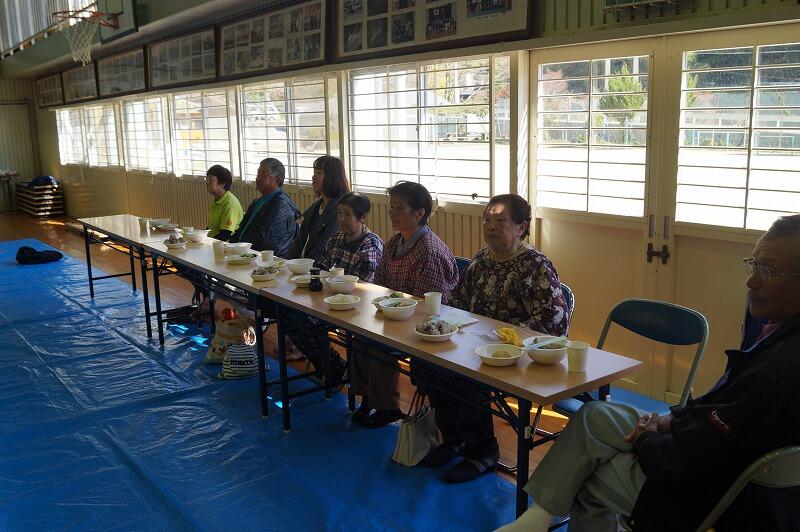 駅伝大会が無事終わると、焚き物のにおいと餅米が炊けた香ばしい香り、そして、豚汁の味噌のよい香りがしてきました。