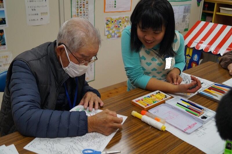 ぬり絵が始まると、全員が集中して黙々と作業をしていました。できあがりをほめていただき、児童も喜んでいました。