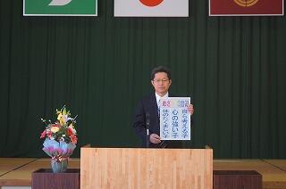 最初は、新たな先生方を迎える新任式です。今回は、新しい教頭先生を