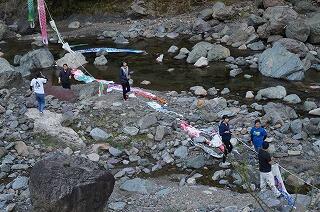 4月19日(金)の放課後、PTAの皆様の協力を得て、学校前の一ツ瀬川にこいのぼりを設置しました。