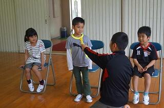 その後に、ハンドタオル落としをしました。(自分たちの時代はハンカチ落としでしたが・・・)