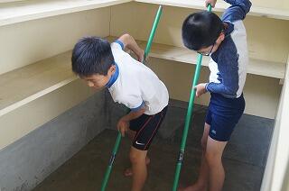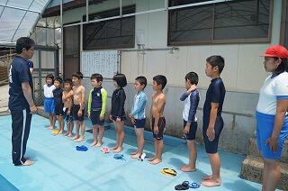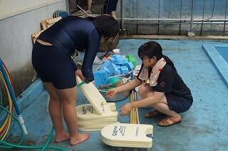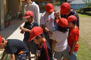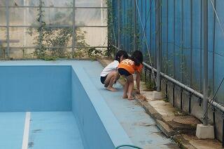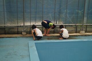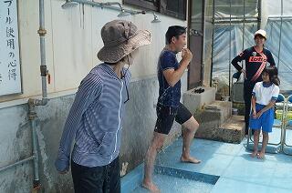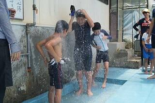 これまた、大河内小学校のプールでの風物詩。シャワーの後の