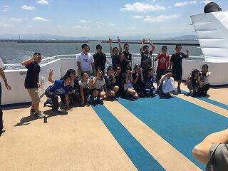 島原へ移動するフェリーでの様子。天気も最高。みんなの気分も