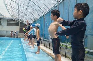 冷たい水の中での水泳学習ですが、昨年よりも少しでも上手に