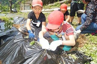 しっかり苗を植えます。(小学生のお兄さん、お姉さんのまねして