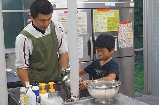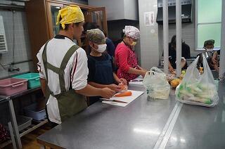 3年生を中心にご飯やサラダの準備。