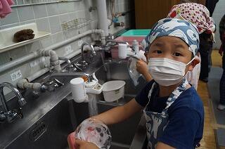 1・2年生は、食器の準備。