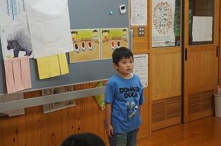まず、はじめに国語の学習でまとめた作文を発表しました。
