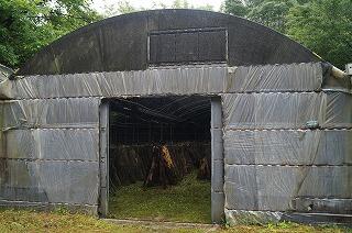 しいたけハウスです。ここでおいしい椎茸が作られています。