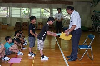 お別れ集会では、ウォークラリーの表彰もありました。手作りの