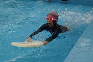 さすが、顔を付けて息継ぎも上手です。来年はビート板なしで