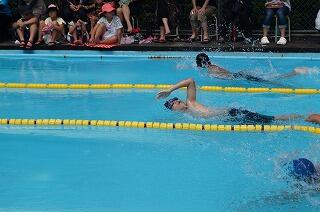 6年生50mクロール。折り返してからの後半もいい泳ぎです。