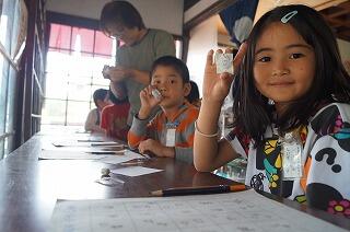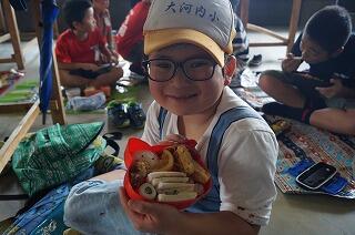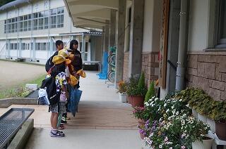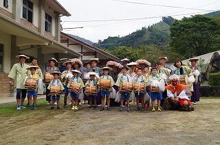 無事に学校に到着です。子どもたちが活動する時間は雨も降らず