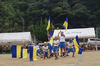 小学生の表現です。フラッグを上手に使ったとてもかっこいい