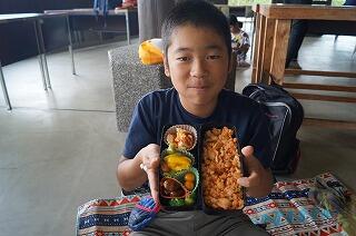 あったので、施設内の工作室で食べました。「弁当の日」の
