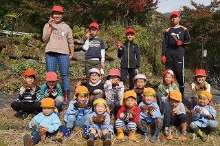 芋畑まで移動です。小学生と保育所生なかよく移動です。
