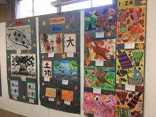 子どもたちの習字や絵など力作揃いです。