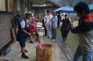 最後に6年生は、赤餅を親子でつきました。