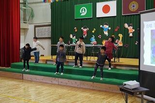 3・4・6年生の劇。なんと英語劇「MOMOTARO」