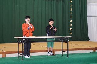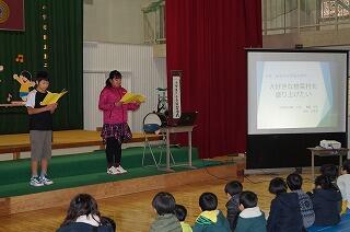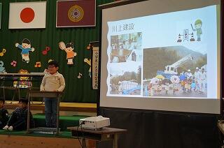 6年生の発表です。まず、「大好きな椎葉村を盛り上げるため」に
