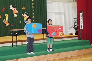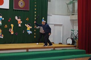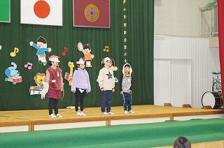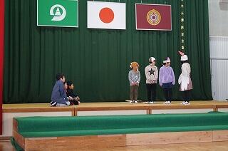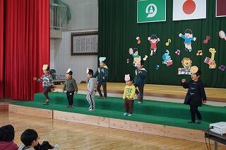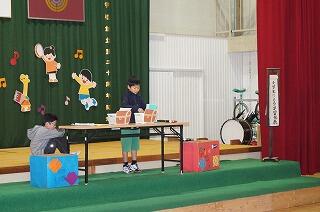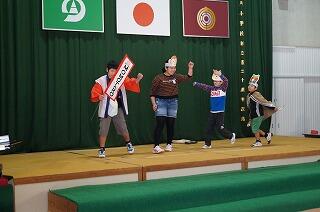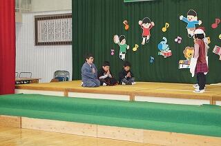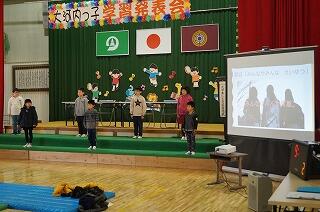 3・4・6年生の劇。なんと英語劇「MOMOTARO」