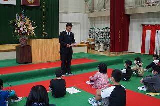 校長先生が子どもたちの1年間のがんばりを話されました。
