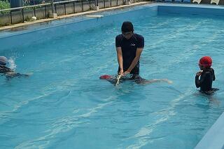 来年は、けのびやバタ足など少しでも長く泳げるように
