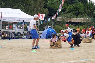 保護者・職員団技。玉入れ、綱引きも真剣です。