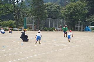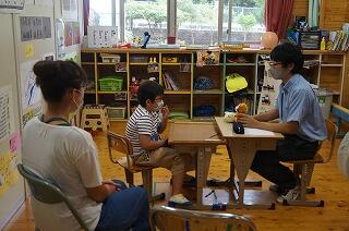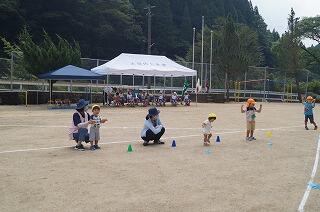 小学生と保育所生の団技。小学生が優しく保育所生を